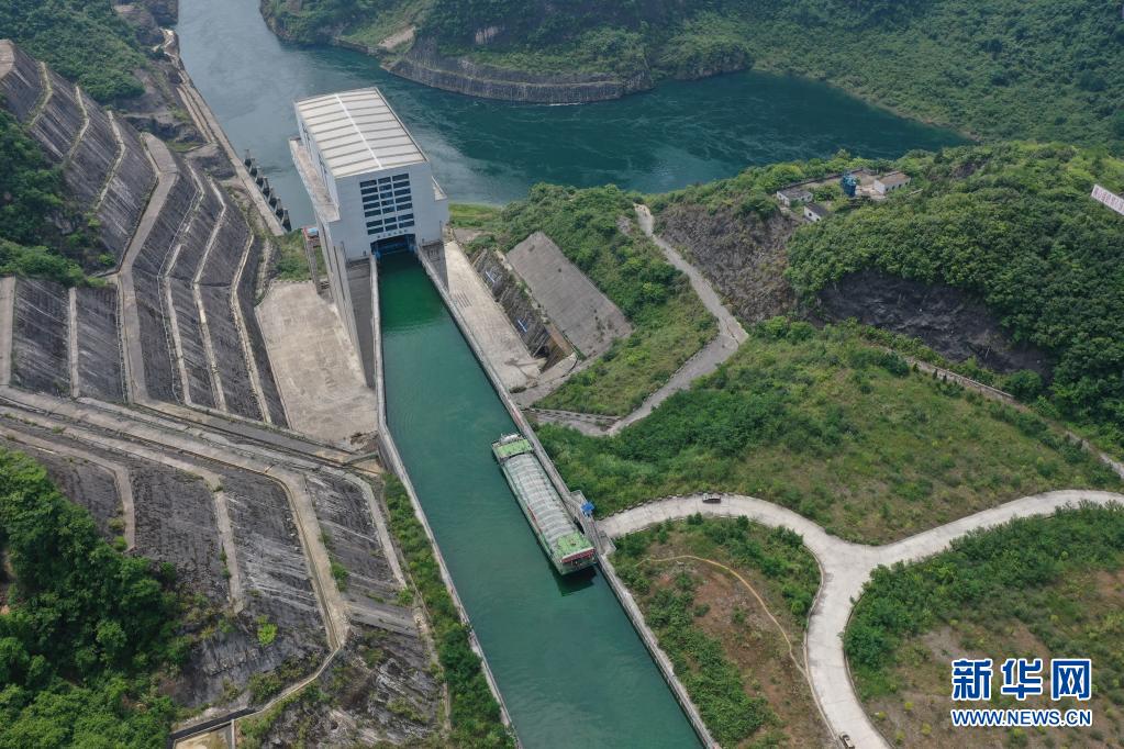 当日,位于贵州省遵义市余庆县境内的乌江构皮滩水电站通航工程开始试运行。构皮滩水电站通航工程线路总长2306米,由上下游引航道、三级垂直升船机和两级中间渠道组成。投入试运行后,500吨级船舶可从贵阳的开阳码头依次通过构皮滩、思林、沙沱、彭水,在重庆涪陵进入长江。