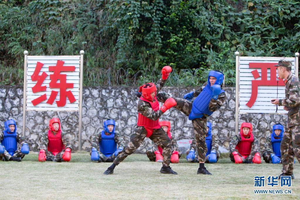 武警广西总队崇左支队执勤大队凭祥中队官兵开展搏击对抗训练(1月15日摄)。新华社发(余海洋 摄)