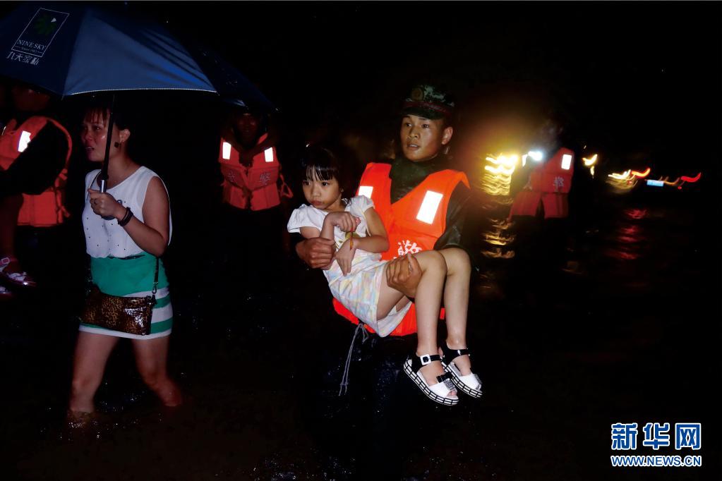 武警广西总队崇左支队执勤大队凭祥中队官兵协助地方政府救助转移洪涝受灾群众(2017年11月1日摄)。新华社发(杨瑞 摄)