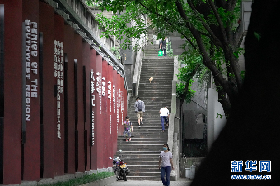 作为一条展现百年党史的步道,西南大区步道位于重庆母城渝中区,以展现老一辈无产阶级革命家在重庆建设成就为主体,主线串联大礼堂、文化宫、体育场等西南大区时期重要建筑,沿线分布周公馆、跳伞塔、潘文华公馆等大量文保单位、历史文化资源。目前,西南大区步道已整治提升完成约10.3公里,包括主线3公里,支线曾家岩临崖步道一期、枣子岚垭步道、张家花园巷等步道共7.3公里。整个步道利用微导视系统串联历史人文要素,达到提升步行体验、重拾场所记忆的效果。游走其间,仿佛在与时光对话,穿梭在众多历史遗址和文物建筑中,百年党史中的许多鲜活历史画面不禁涌上心头。新华网 耿骏宇 摄 韩梦霖 文