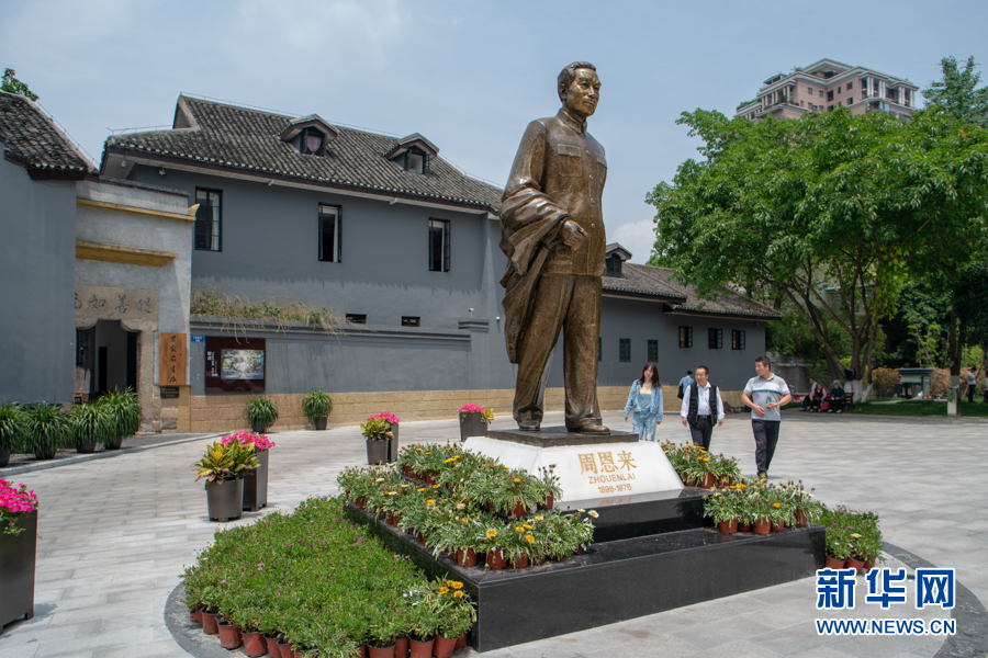 位于渝中区中山四路曾家岩50号的中共中央南方局旧址(周公馆)。从1938年开始,直到1946年5月,周公馆一直是中共中央南方局部分机构所在地。该址见证了当年中共中央南方局和周恩来在重庆的斗争历程,对教育人民群众和广大青少年学习老一辈无产阶级革命家的革命精神、继承和发扬党的光荣传统具有重要的历史价值。图为周公馆外的周恩来铜像。新华网 耿骏宇 摄 韩梦霖 文