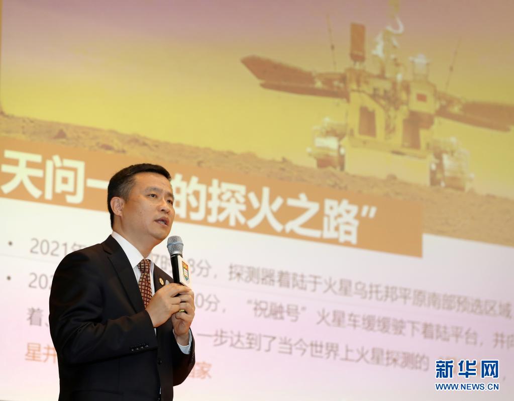 6月24日,天问一号火星探测器总设计师孙泽洲在香港大学作报告。新华社记者 李钢 摄