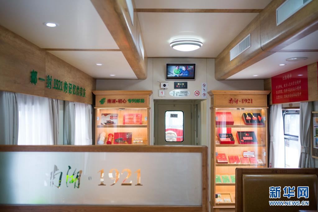 这是6月25日在Y701次列车上拍摄的“南湖·初心”专列邮局。新华社记者 江汉 摄