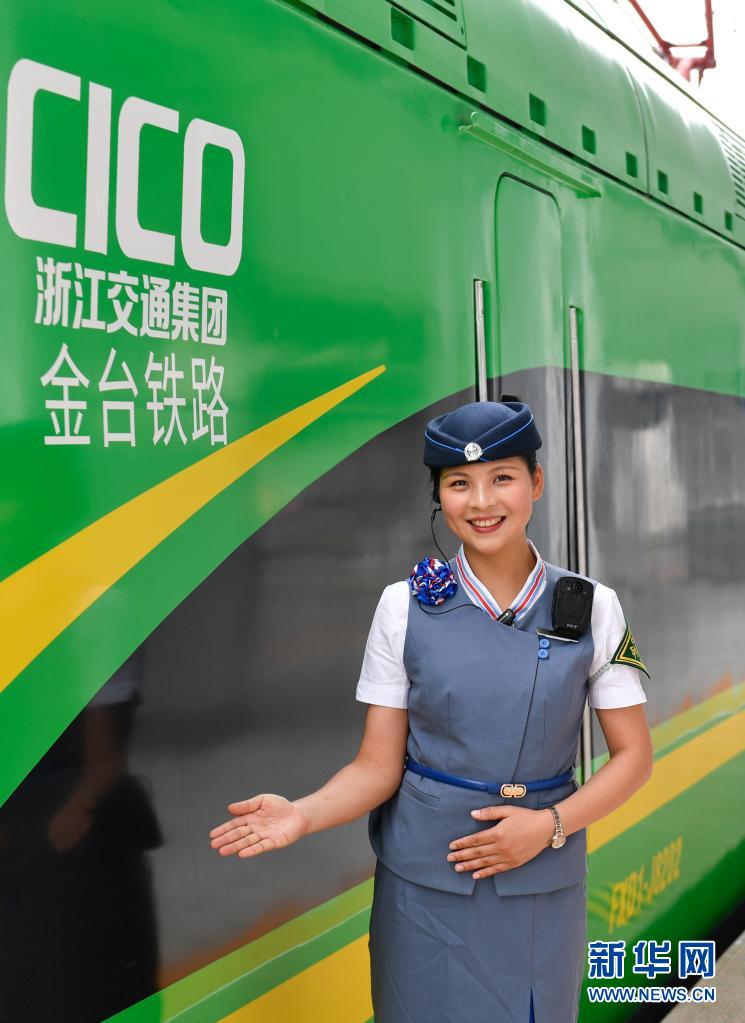 6月25日,在台州西站,金台铁路首趟列车的乘务员在车厢门口迎候旅客。 新华社记者 黄宗治 摄