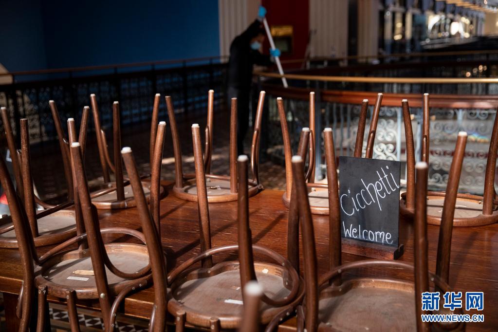 6月26日,工作人员在澳大利亚悉尼市中心一家咖啡厅进行清洁工作。