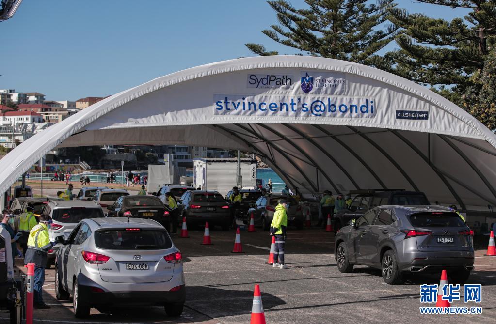 6月26日,医务人员在澳大利亚悉尼一处免下车新冠病毒检测点工作。