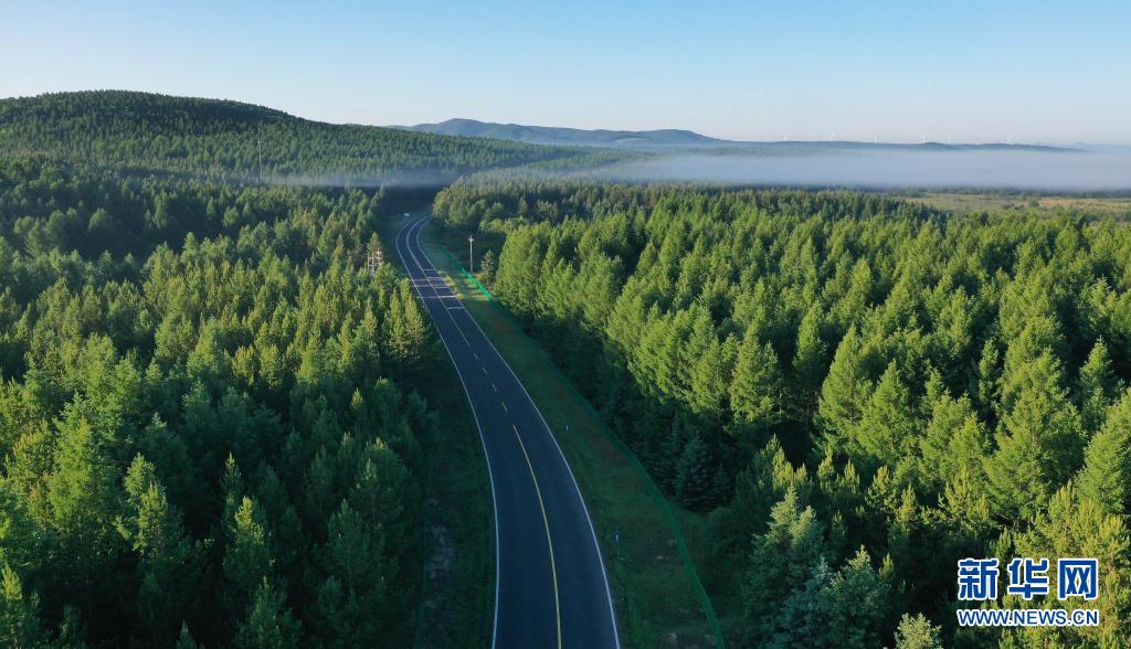 6月27日拍摄的塞罕坝国家森林公园晨景(无人机照片)。