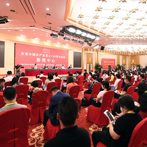 6月27日,庆祝中国共产党成立100周年活动新闻中心在北京举办首场新闻发布会,中央党史和文献研究院院长曲青山等向媒体记者介绍新时代党史和文献工作。这是发布会现场。新华社记者 任超 摄