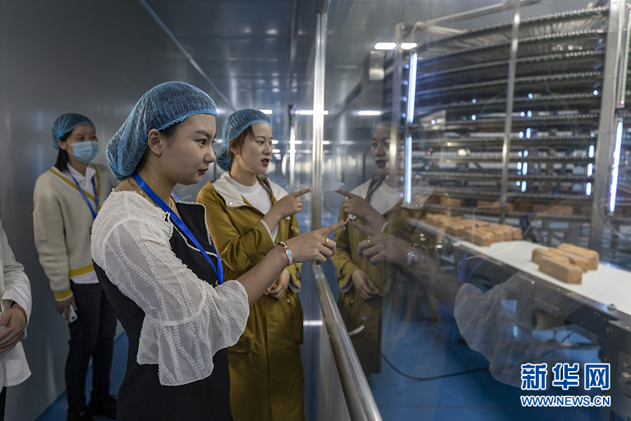 李碧莹走访食品公司,对接对方电商服务需求。新华网发 陈志勇摄