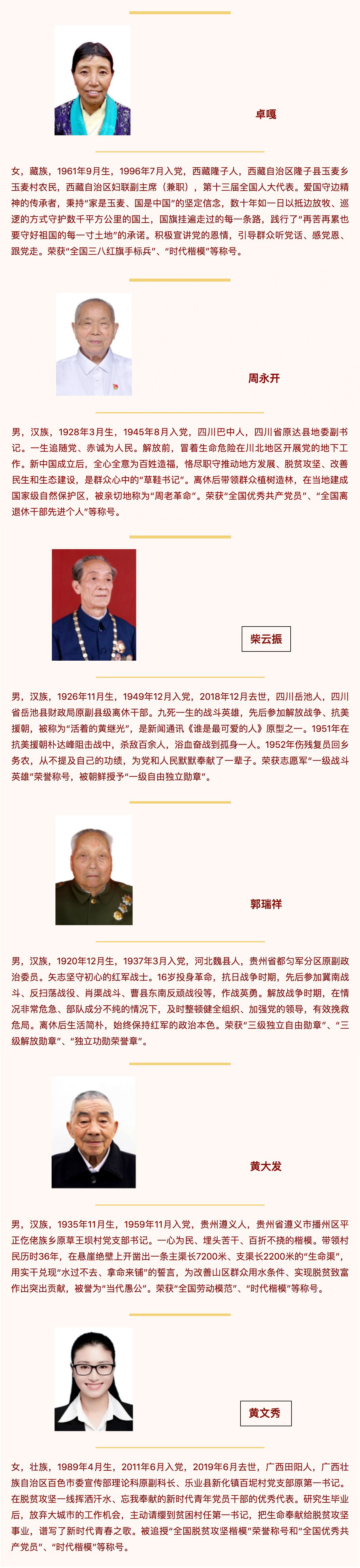 这次受表彰的“七一勋章”获得者,是我们党各个时期、各条战线党员的杰出代表。