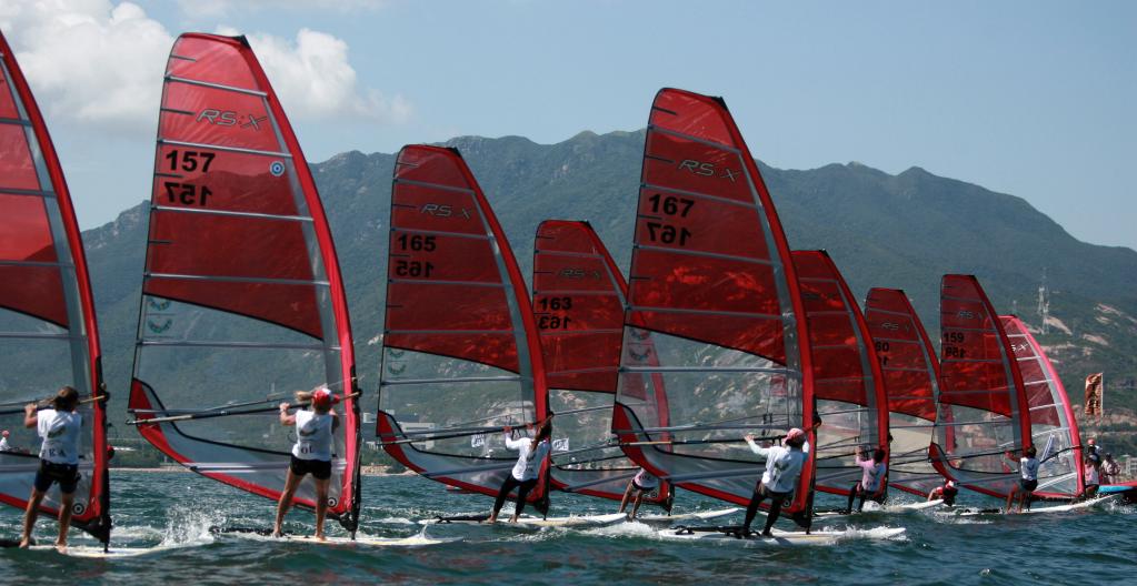 2011年8月21日,选手在第26届世界大学生夏季运动会帆板女子RS:X级比赛中起航。中国选手陈佩娜获得冠军。新华社记者白雪飞摄