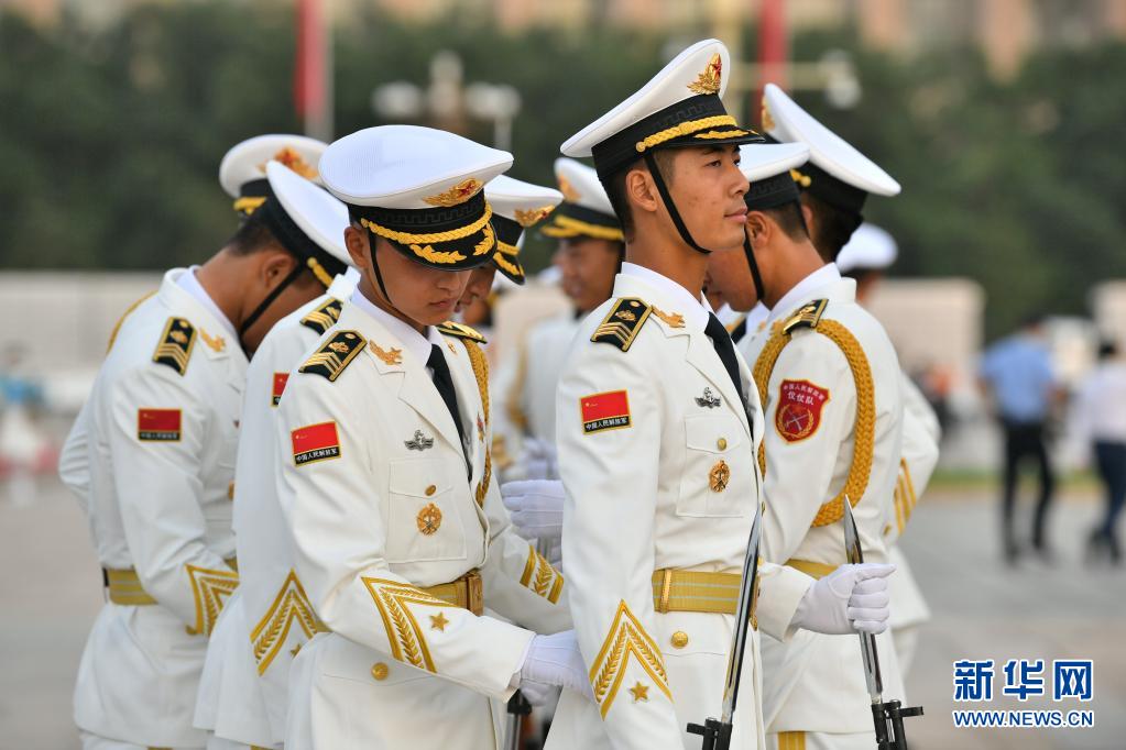 7月1日,庆祝中国共产党成立100周年大会将在北京天安门广场隆重举行。这是清晨,中国人民解放军仪仗队队员在整理服装。