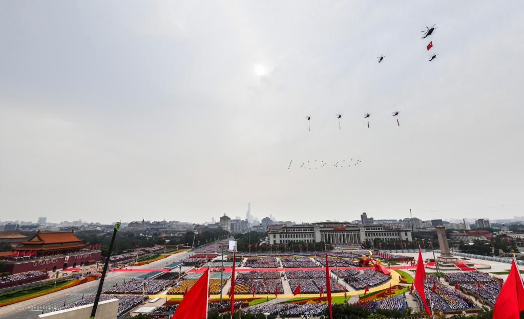 7月1日上午,庆祝中国共产党成立100周年大会在北京天安门广场隆重举行。这是大会开始前的飞行庆祝表演。