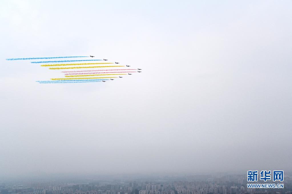 7月1日上午,庆祝中国共产党成立100周年大会在北京天安门广场隆重举行。这是大会开始前的飞行庆祝表演。