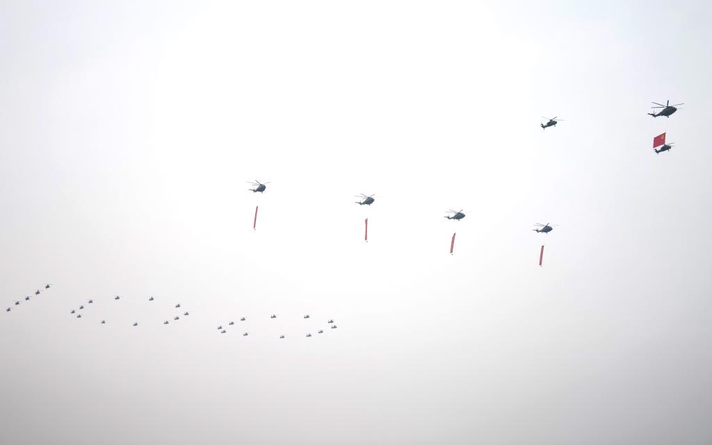 7月1日上午,庆祝中国共产党成立100周年大会在北京天安门广场隆重举行。这是大会开始前的飞行庆祝表演。