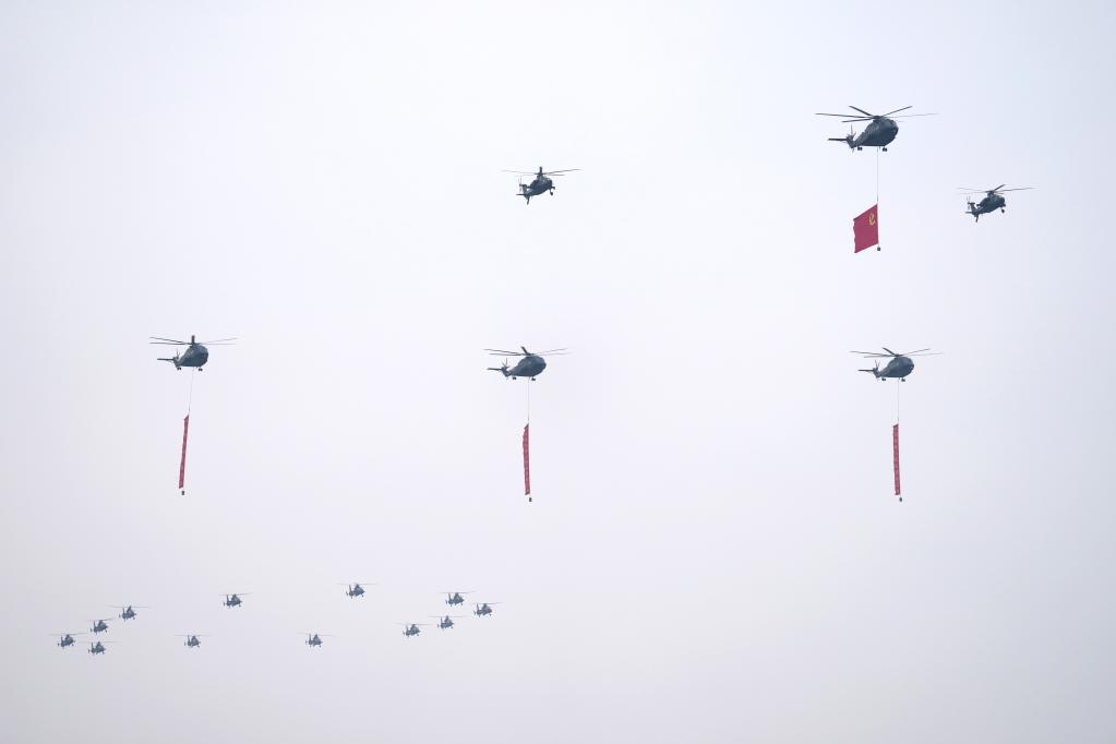 7月1日上午,庆祝中国共产党成立100周年大会在北京天安门广场隆重举行。这是大会开始前的飞行庆祝表演。