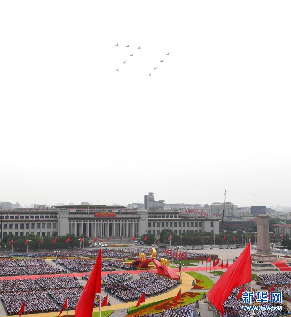 7月1日上午,庆祝中国共产党成立100周年大会在北京天安门广场隆重举行。这是大会开始前的飞行庆祝表演。