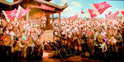 这是展示于龙州起义纪念馆里的油画。图为1930年2月1日,龙州起义打响,1万多名军民在龙州县城新填地广场集会。(龙州起义纪念馆供图)