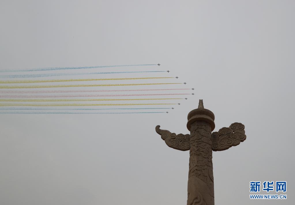 7月1日上午,庆祝中国共产党成立100周年大会将在北京天安门广场隆重举行。这是飞行庆祝表演。新华社记者 戴天放 摄