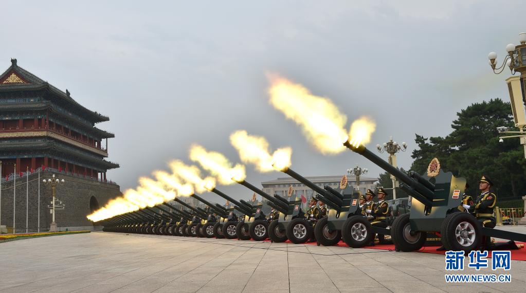 7月1日上午,庆祝中国共产党成立100周年大会在北京天安门广场隆重举行。这是礼炮鸣响。