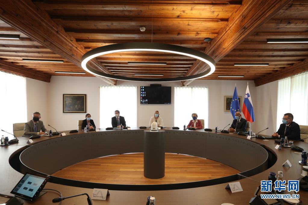 7月1日,在斯洛文尼亚布尔多,欧盟委员会委员与斯洛文尼亚政府官员举行会谈。新华社发(泽利科·斯特凡尼奇摄)