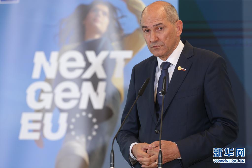 7月1日,斯洛文尼亚总理扬沙在布尔多出席记者招待会。