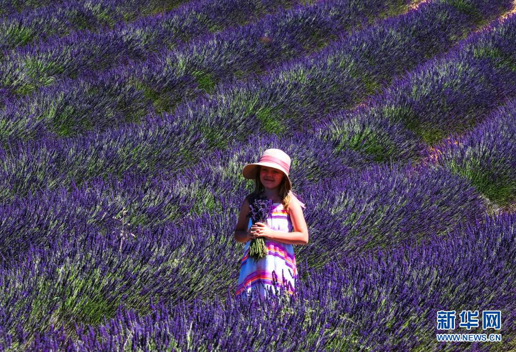 7月1日,一名小女孩在法国南部瓦朗索勒欣赏薰衣草花田。