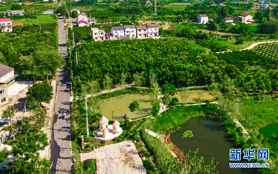 航拍湖北省枝江市董市镇田园乡村。新华网发 陈黄奎 摄