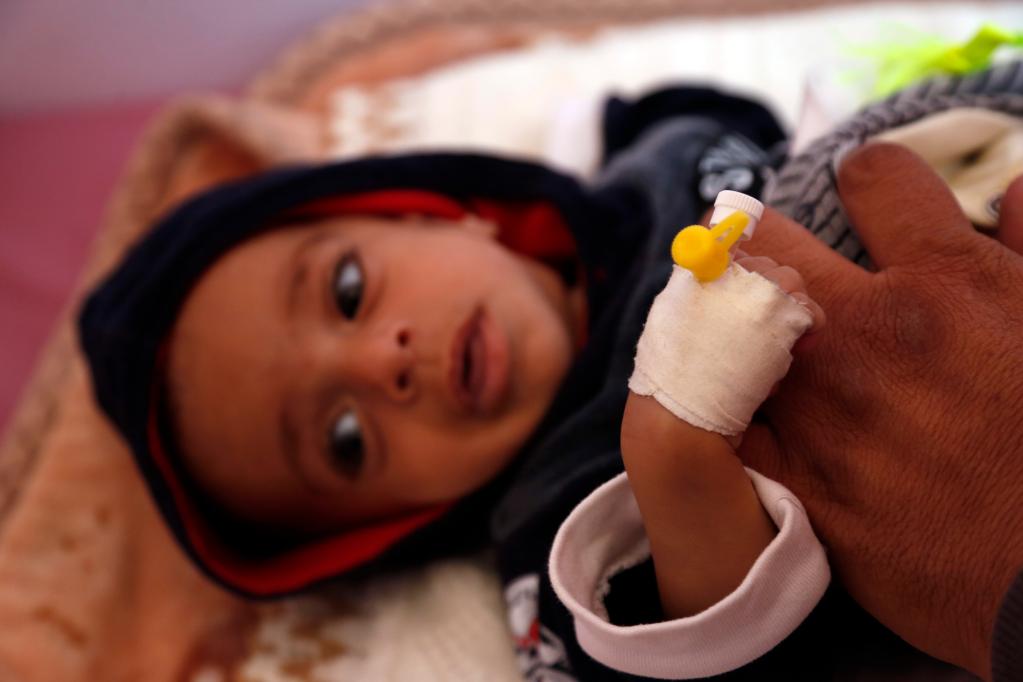 2019年11月13日,在也门萨那,感染疟疾的儿童在医院接受治疗。新华社发(穆罕默德摄)