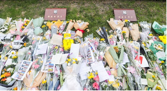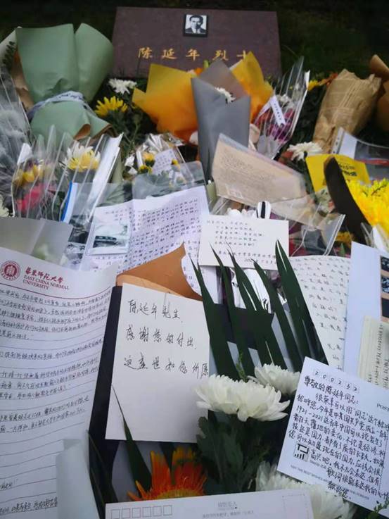 追思者敬献的鲜花和留下的信纸铺满陈延年烈士墓。 新华网林艳兴 摄