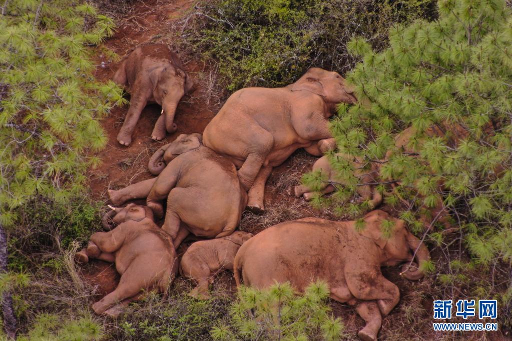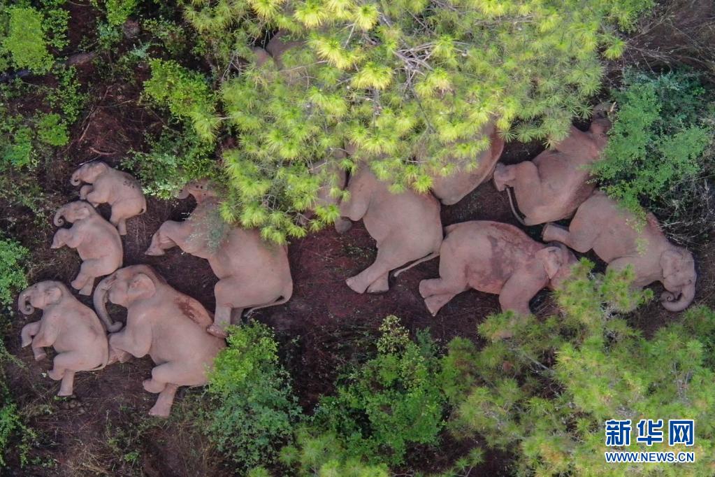 6月14日在云南省玉溪市易门县十街乡拍摄的象群(无人机照片)。新华社发