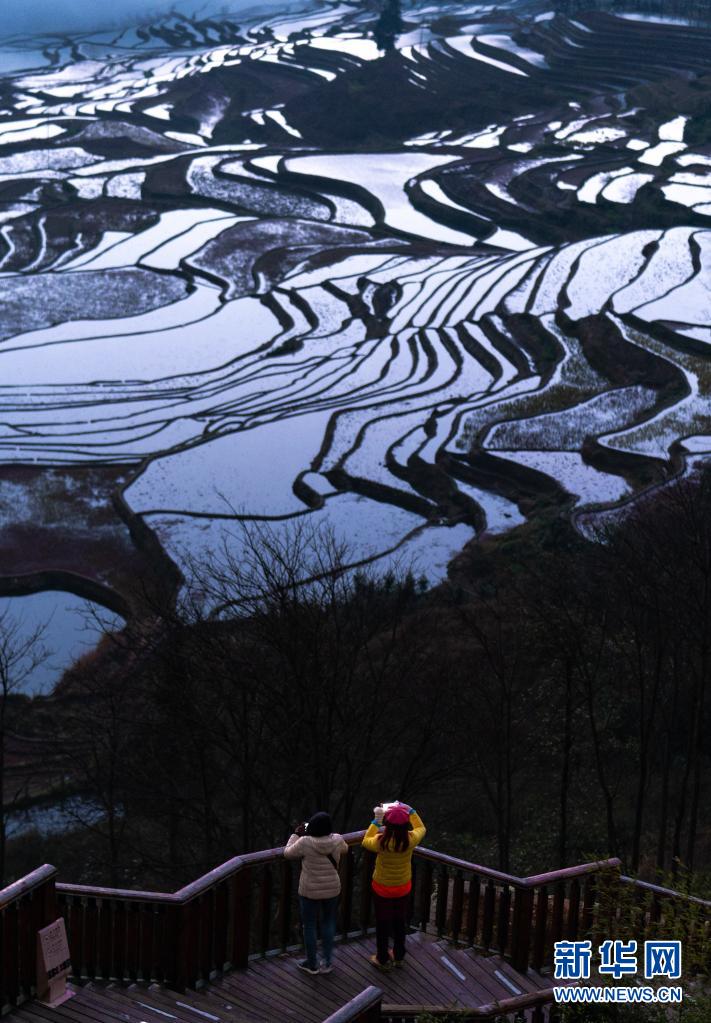 这是1月6日早晨拍摄的位于云南省哀牢山南部的哈尼梯田。新华社记者 王冠森 摄