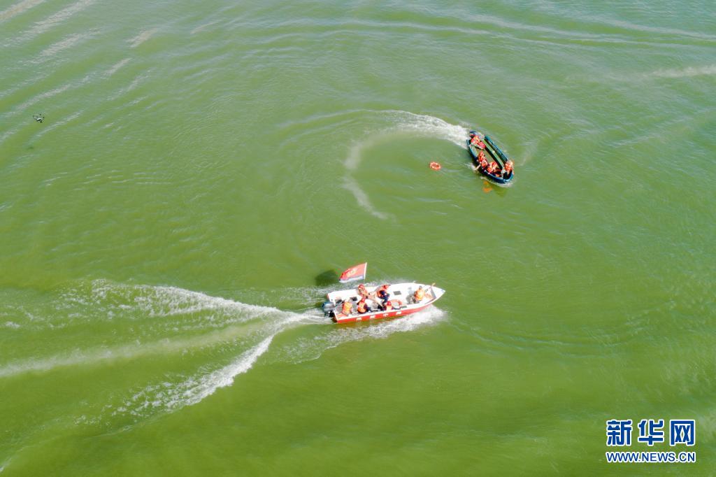 7月5日,救援人员对“落水人员”展开紧急救援(无人机照片) 。