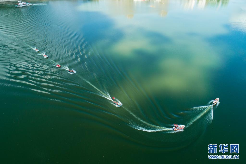当日,四川省阆中市举行水上应急救援实战演练。演练模拟嘉陵江江水猛涨致使群众落水、上游船只失控漂移威胁航电枢纽安全,该市立即启动应急预案,展开紧急救援。