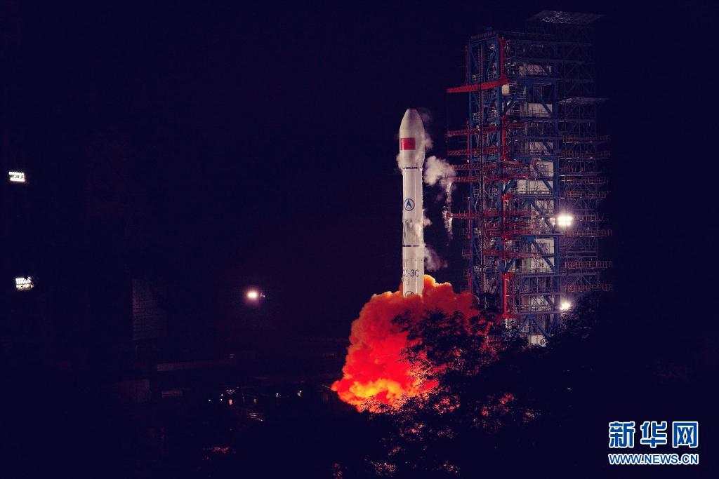7月6日23时53分,我国在西昌卫星发射中心用长征三号丙运载火箭,成功将天链一号05星发射升空,卫星顺利进入预定轨道,发射任务获得圆满成功。新华社发(杨熙 摄)