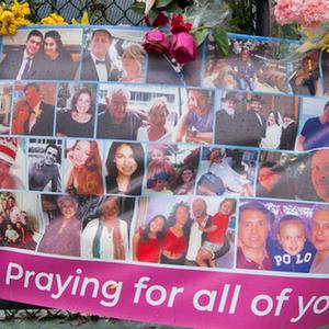 这是7月6日在美国佛罗里达州迈阿密-戴德县坍塌的住宅楼附近拍摄的悼念墙。新华社发(莫妮卡·麦克盖文摄)