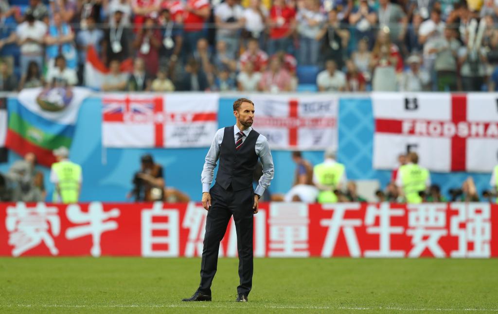 2018年7月14日,英格兰队主教练索斯盖特在比赛后。当日,在圣彼得堡进行的2018俄罗斯世界杯足球赛三四名决赛中,英格兰队以0比2不敌比利时队,最终获得第四名。新华社记者鲁金博摄