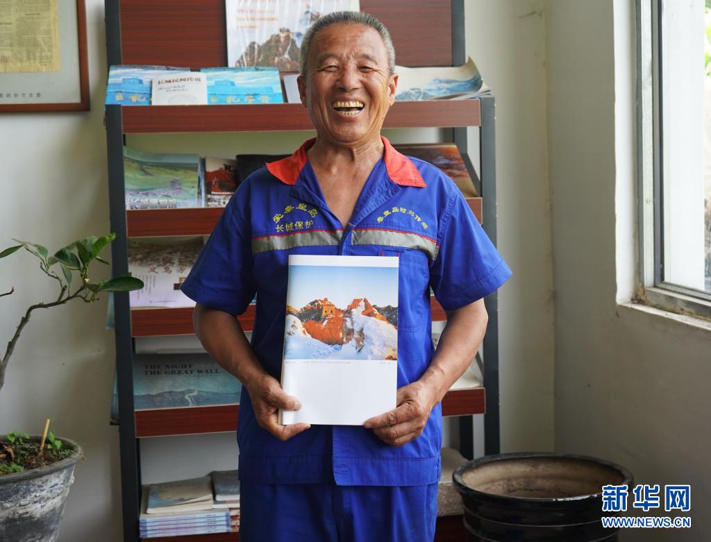 7月7日,在秦皇岛市海港区城子峪村,张鹤珊在家中展示他发表在媒体上的明长城照片。新华社记者 金皓原 摄