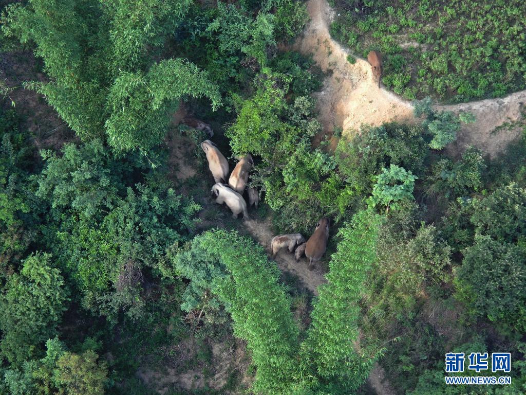 7月10日在红河州石屏县拍摄的象群(无人机照片)。新华社发(云南省森林消防总队供图)