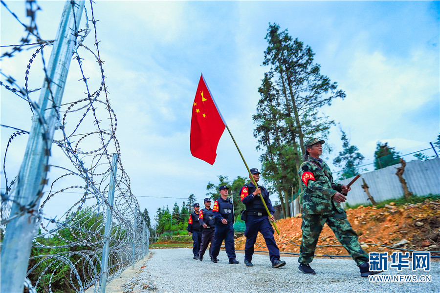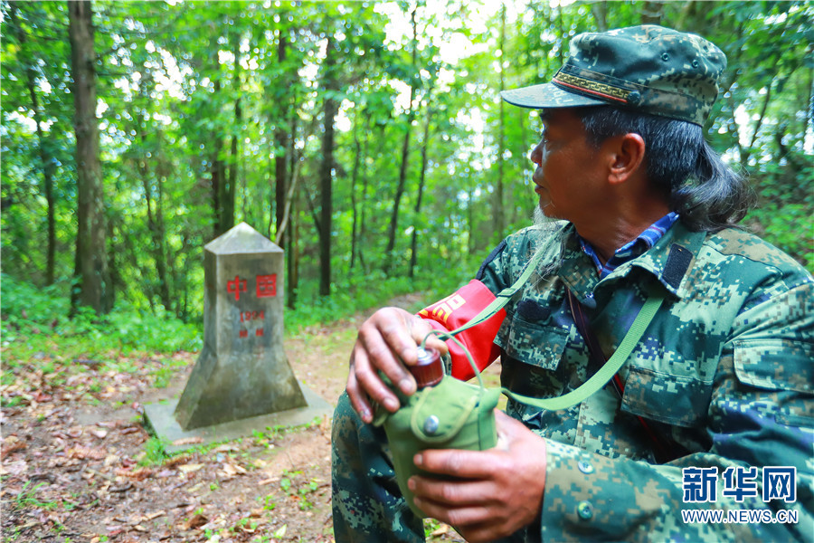 岩聪巡逻到中缅180附2号界桩处。新华网发