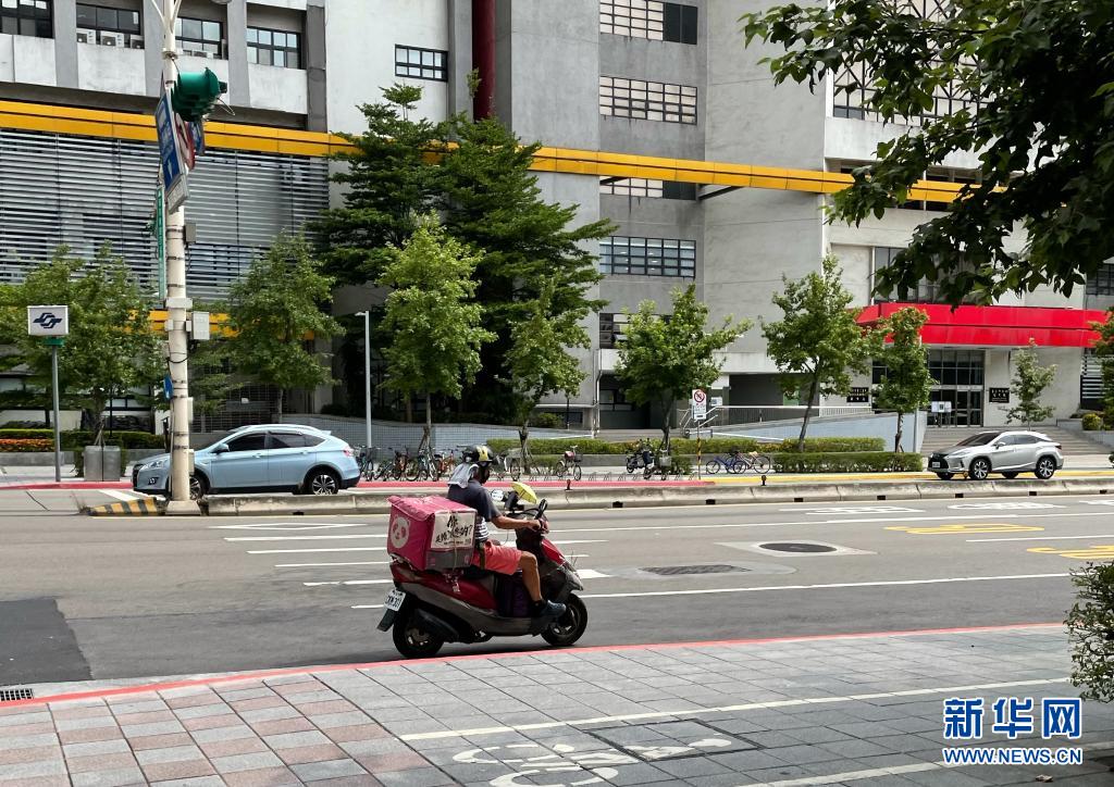 因为疫情,岛内餐厅在三级警戒下禁止内用,外卖业务增加,街头不时可见“送餐小哥”。新华社记者 陈键兴 摄