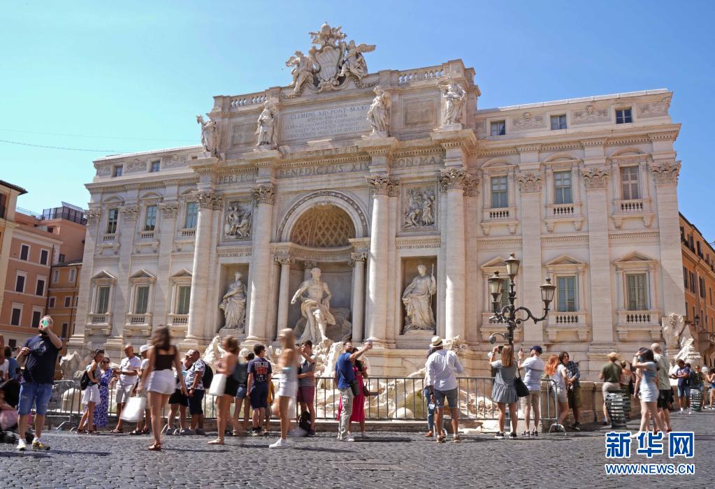 7月11日,人们在意大利罗马的许愿池前参观拍照。