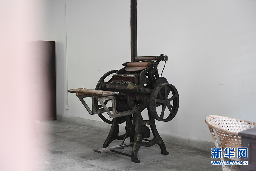图为《新华日报》总馆旧址展示的印刷机。新华网 耿骏宇 摄