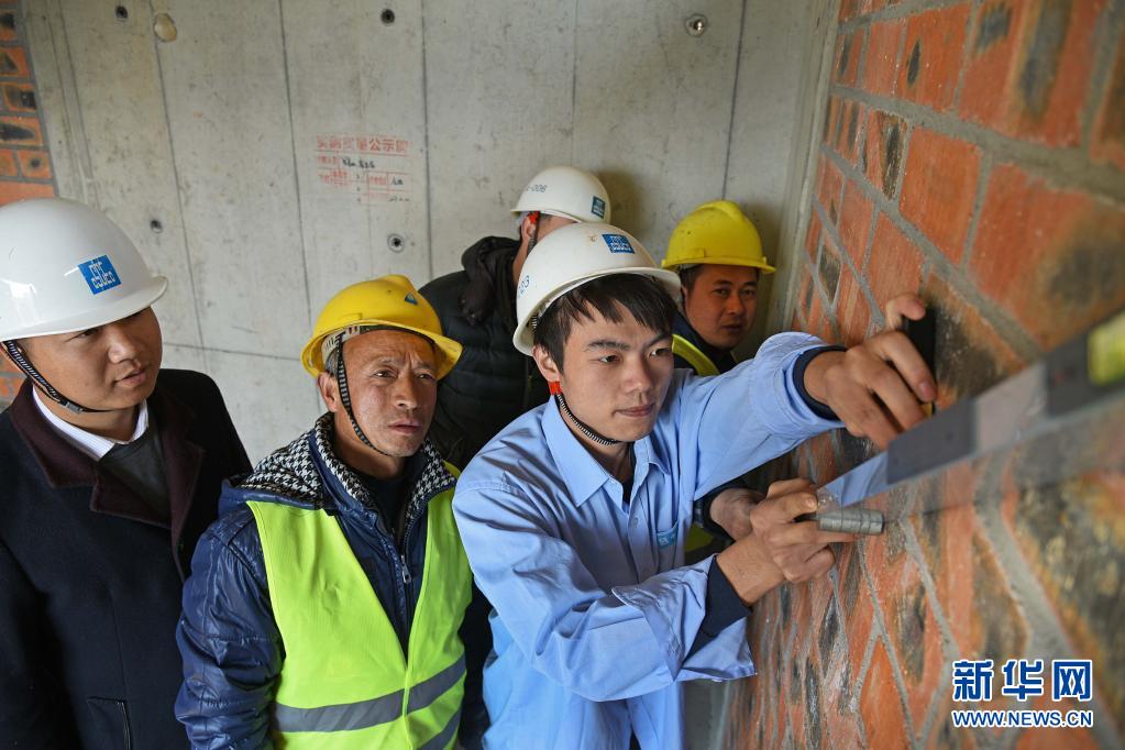 邹彬在给工友“打样”(2018年2月8日摄)。 新华社发