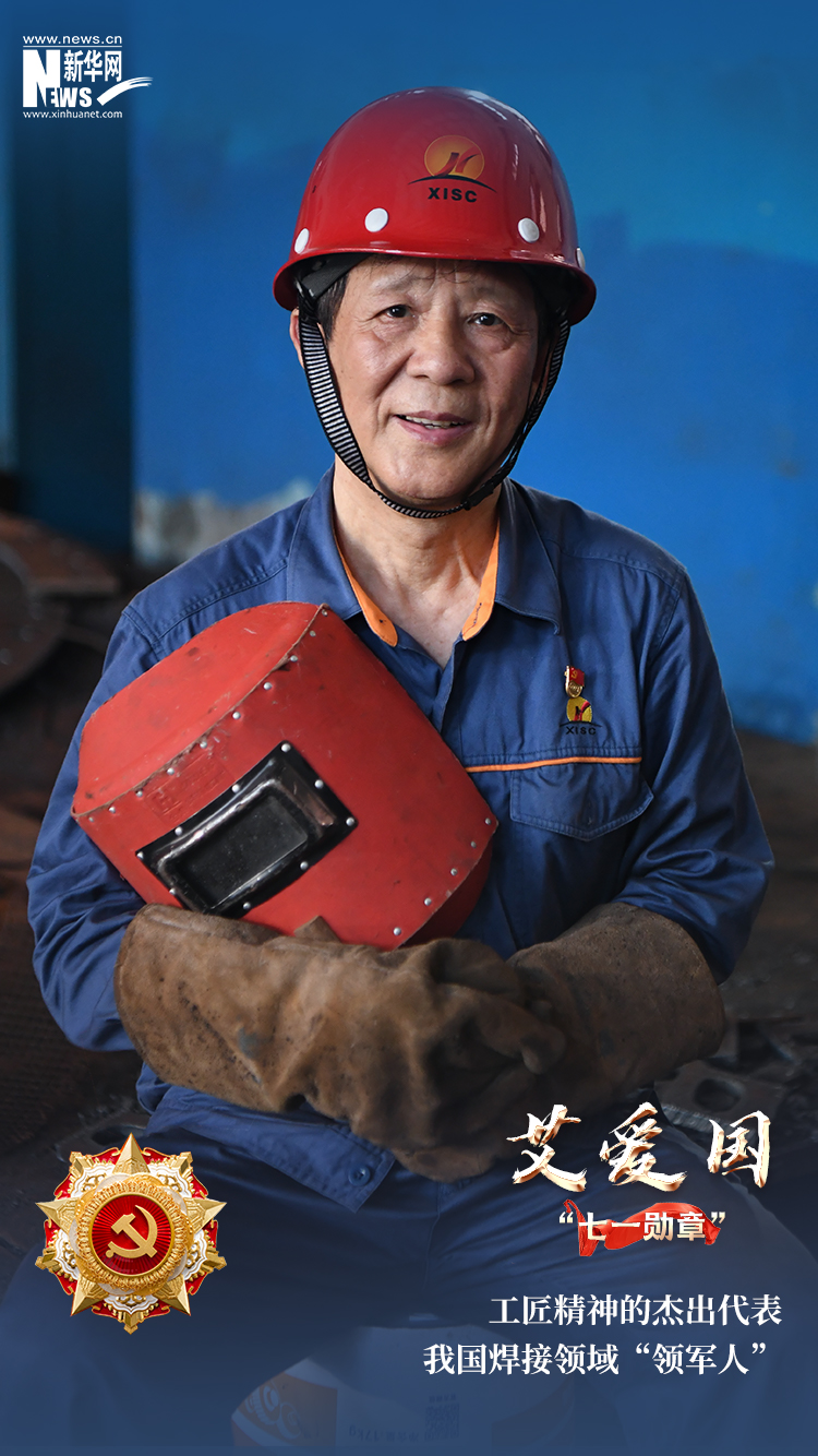 “七一勋章”颁奖词是这样说的,艾爱国是工匠精神的杰出代表,在焊工岗位奉献50多年,精益求精,追求卓越,勇于自主创新,攻克了数百项技术难关,成为一身绝技的焊接行业“领军人”。