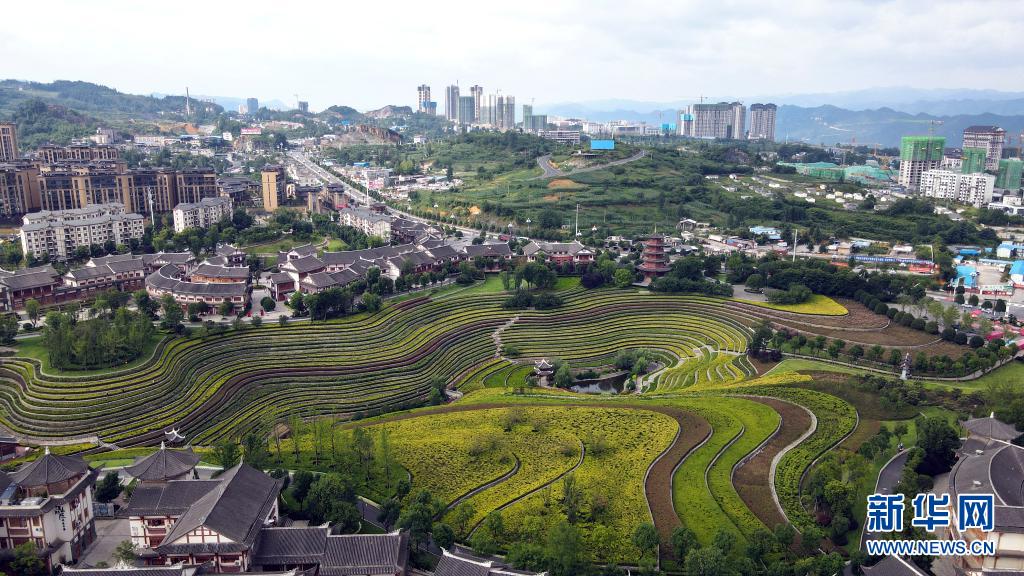 7月15日拍摄的贵州毕节大方县奢香古镇(无人机照片)。