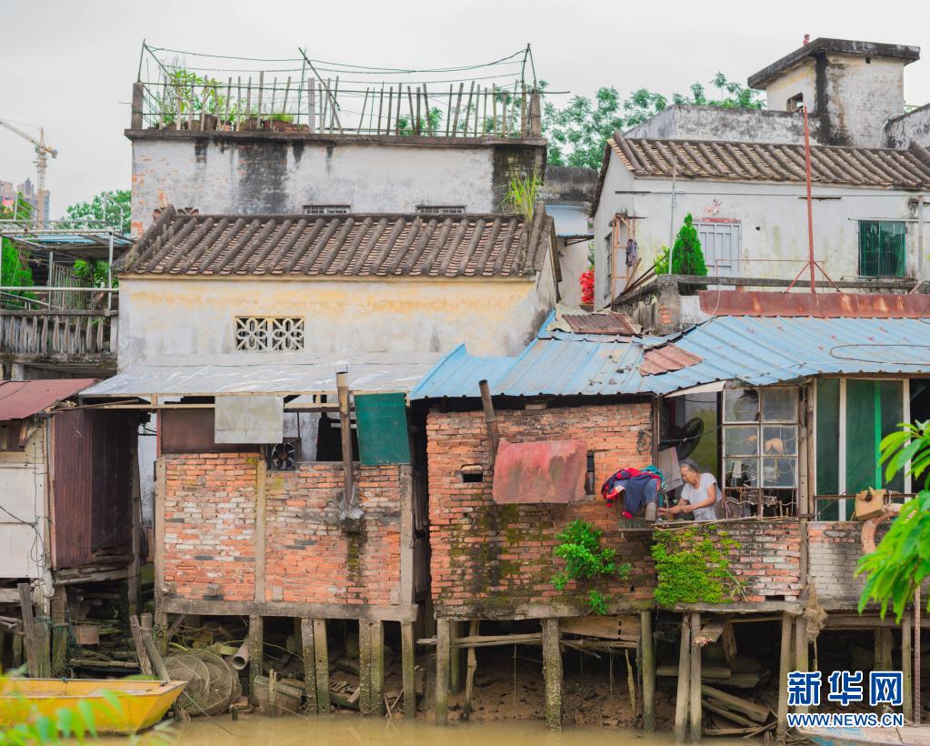 这是改造前广东省江门市下沙片区棚户区内的吊脚楼(资料照片)。新华社发
