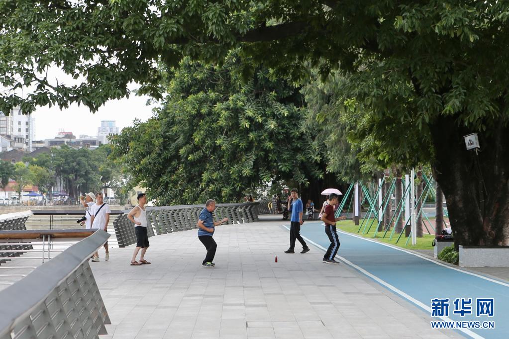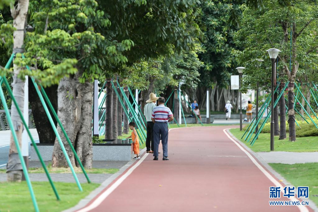 7月15日,市民在广东省江门市江海区下沙公园散步。新华社记者 耿馨宁 摄