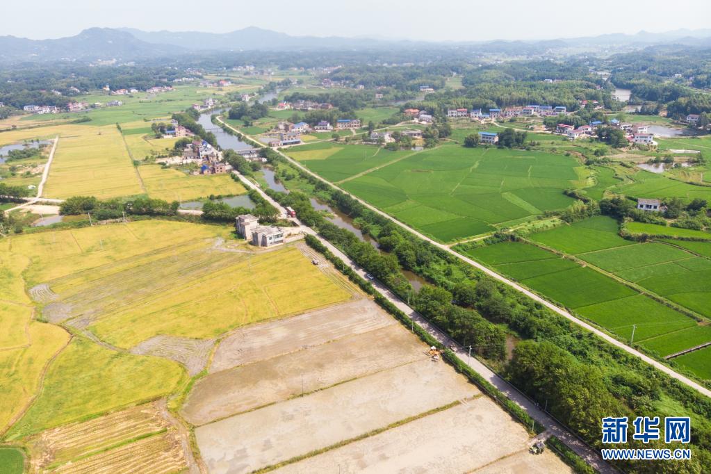 这是7月15日在湖南省湘乡市育塅乡南水村拍摄的农田(无人机照片)。新华社记者 陈思汗 摄