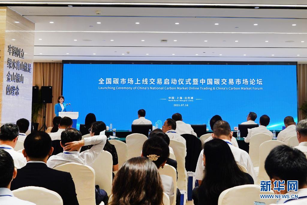 7月16日,全国碳市场上线交易启动仪式暨中国碳交易市场论坛在上海环境能源交易所举行。新华社记者 程思琪 摄